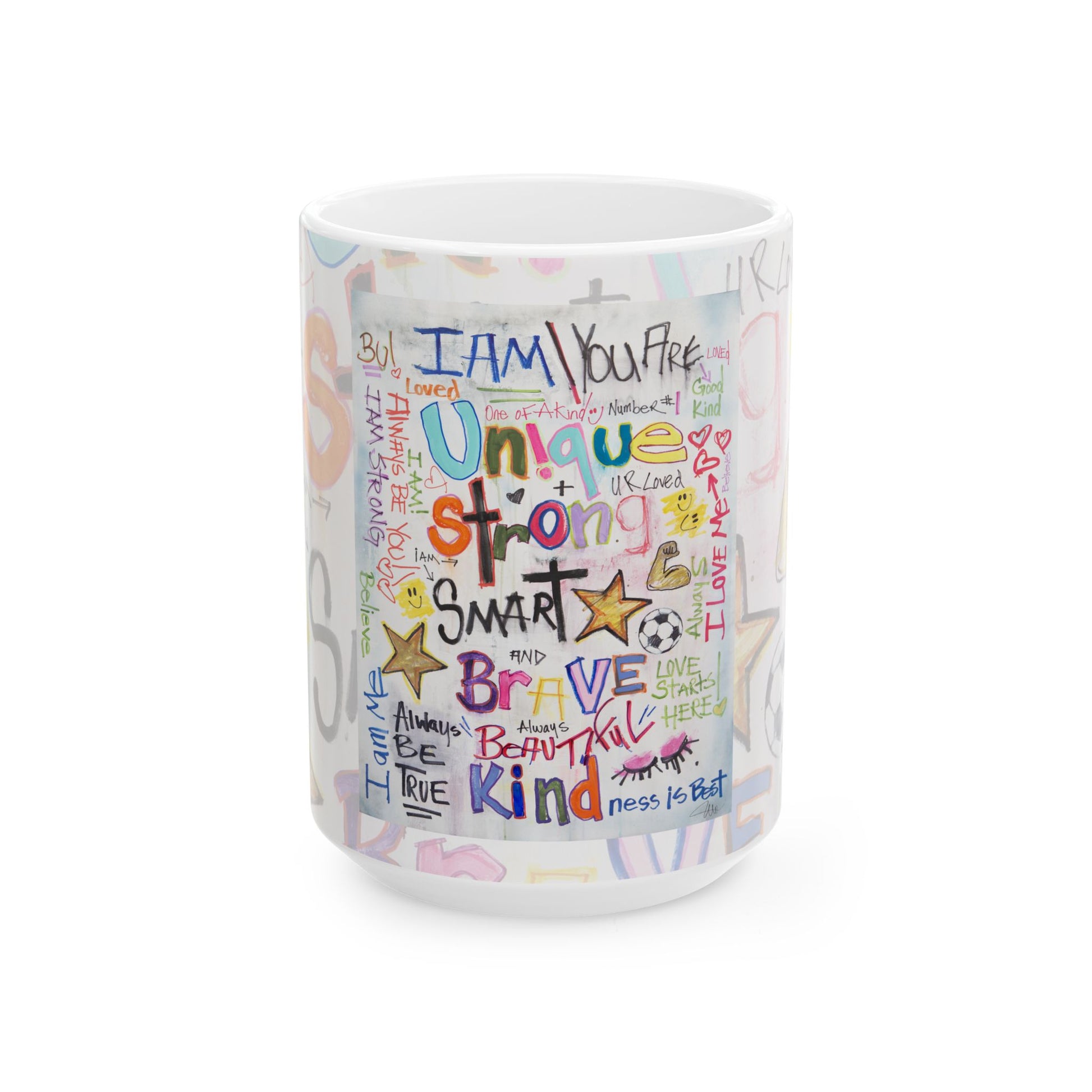Bring some cheer to your mug collection and brighten your day with I am Unique, from the iocoArt Graffiti-inspired collection!