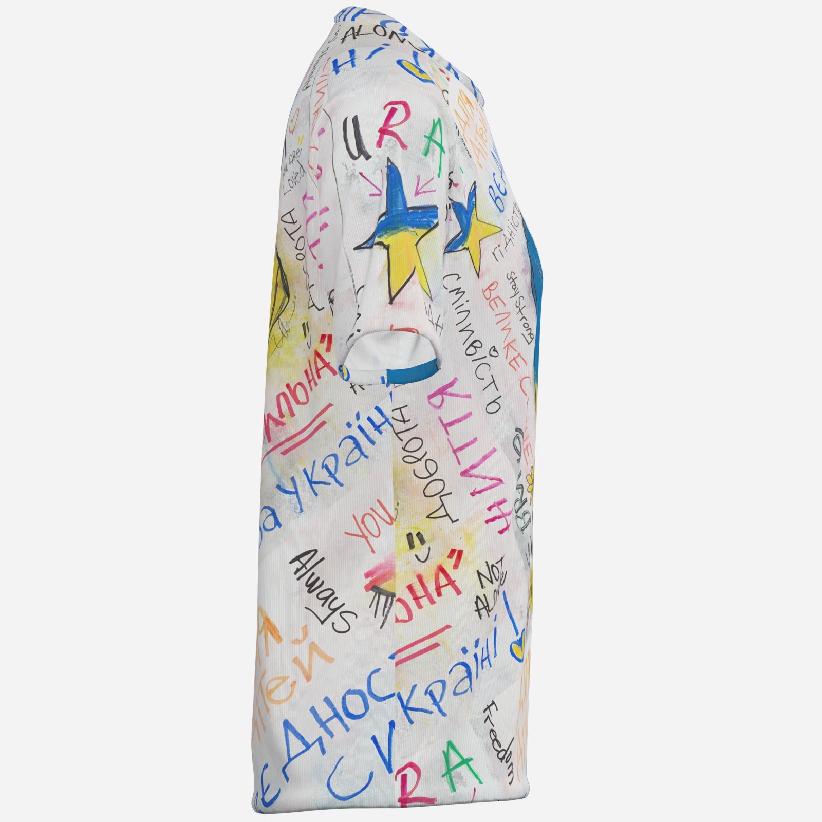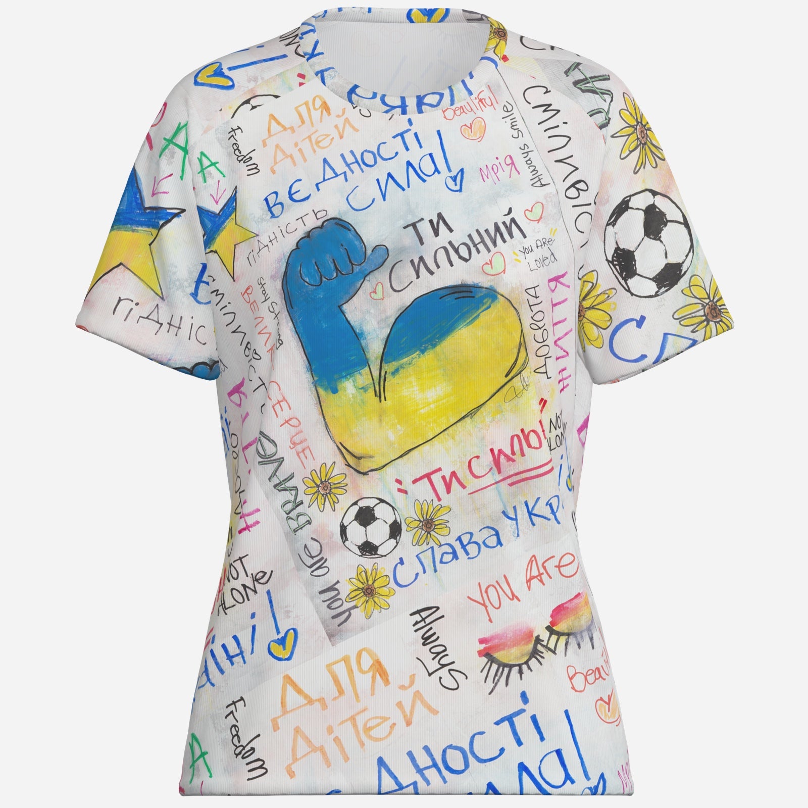 Celebrate Strength and Solidarity with this inspiring design from the iocoArt Graffiti-inspired collection. A powerful strong arm in the colors of the Ukrainian flag is surrounded by vibrant words of encouragement, love, and empowerment—transforming art into a symbol of resilience and beauty.